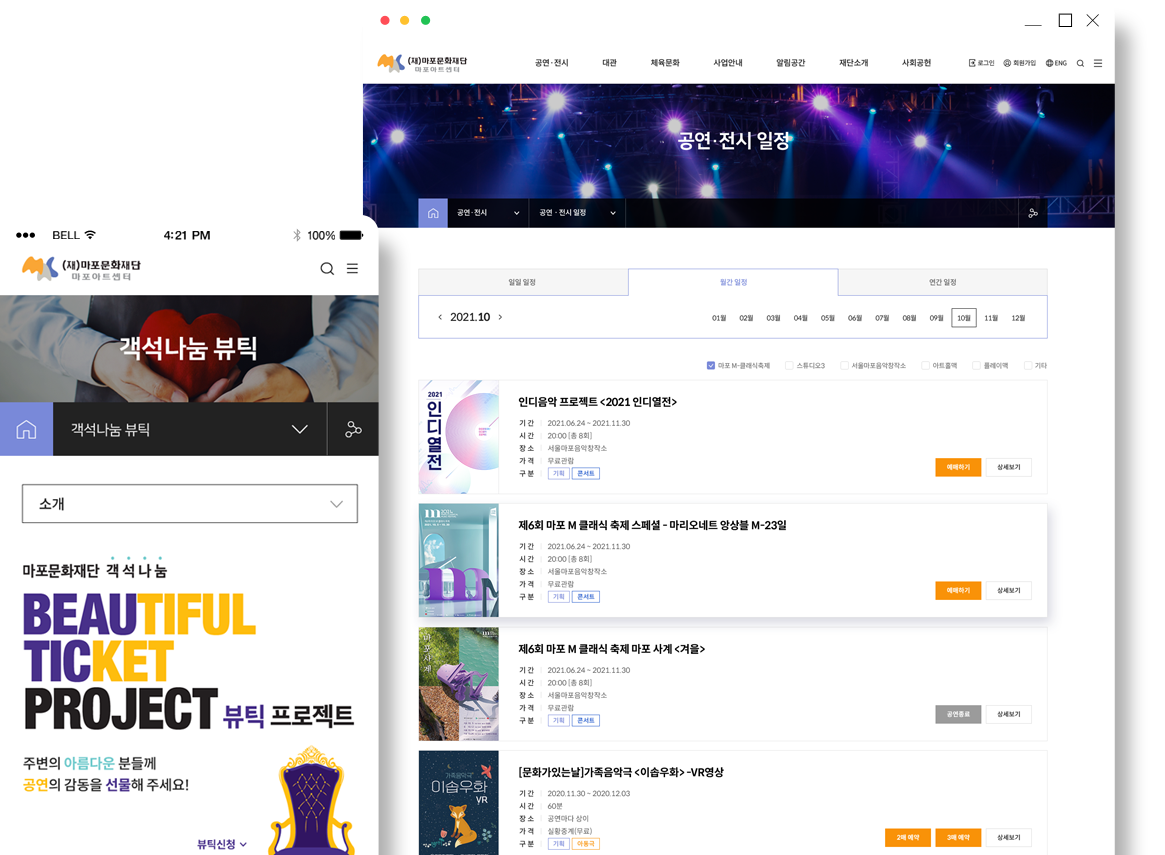 이번 마포아트센터 홈페이지 리뉴얼 구축은 최신 웹트렌드, 정부지침 및 표준가이드 준수, 반응형 웹,